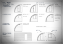 3 verschiedene Größen. Ab folgenden Größen bestellbar: Half Pod 2,4 x 3 m; Half Pod 2,4 x 4,8 m; Half Pod 2,4 x 2,4 m.