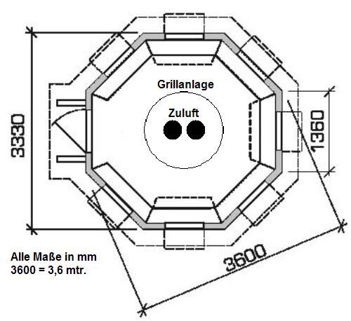 Die ganz besondere Kota! 9,9 m² dabei 8-eckig mit Grill und Granittischplatte.